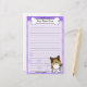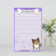 Amusement Kawaii Sheltie avec une race de chien de bande dessinée dans le coin inférieur droit. La partie supérieure peut être immédiatement personnalisée avec votre nom à l'intérieur du grand os de chienchien. L'arrière - plan de frontière et de papier sont pourpre.