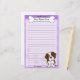 Papeterie de Kawaii St Bernard d'amusement avec une race de chien de bande dessinée dans le coin inférieur droit. La partie supérieure peut être immédiatement personnalisée avec votre nom à l'intérieur du grand os de chienchien. L'arrière - plan de frontière et de papier sont pourpre.
