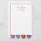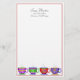Envoyez une lettre personnelle avec cette délicieuse papeterie de la Coupe du Café avec chacun des designs de la Coupe du Café Collection. Personnalisez le papier à lettres avec votre nom et adresse ou avec tout texte que vous choisissez. Les couleurs vives et les dessins fantaisistes enverront un message d'amitié, de chaleur et de partage. N’oubliez pas de commander les timbres-poste correspondants.