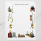 Remplissez votre nom ou le nom du destinataire de ce papier à lettres personnalisé de laboratoire d'alchimie avec un ensemble de béchers, appareil de distillation, thermomètres et autre équipement de laboratoire autour de la bordure de la page, avec de la place pour la correspondance.