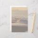 Une plage à l'aube avec une jetée à l'arrière-plan est sur cette papeterie.