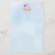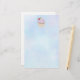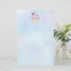 Papier à lettres avec illustration d'un délicieux cupcake aux tourbillons roses et d'une baie aux feuilles nichés dans le gel. Placé sur un arrière - plan pastel bleu clair.