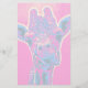 Une pose amusante d'une jolie girafe - qui sort sa langue ! Couleurs de néon gaies et amusantes de rose et de bleu. Amusant style pop art rétro des années soixante.