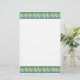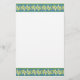 Une feuille de papier à lettres ou papeterie chic, avec une bordure de style Art Nouveau de Lilies-of-the Valley sur un arrière - plan bleu ; de la collection Posh & Painterly 'For the Love of Lilies'.