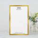Un grand monogramme noir est au sommet. Une ligne de texte d'affichage noir est sous le monogramme du nom. Deux lignes de texte noir sont en bas. Vous pouvez modifier ce texte pour afficher des informations de contact telles qu'un numéro de téléphone, une adresse électronique et une adresse de rue. Tout le texte peut être modifié ou supprimé. Cette papeterie professionnelle a une fausse bordure en or. (La bordure n'est pas faite de feuille.)