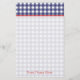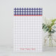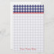 Papier à lettres avec un arrière - plan de en vichy bleu avec garniture rouge. Personnalisez avec votre nom en bas.