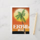 Erbil Irak Affiche de voyage d'un coucher de soleil du Moyen-Orient dans un décor chaud le soir, il y a un grand et beau palmier au premier plan.
