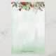 Une jolie bordure en aquarelle se compose de à feuillage persistant poinsettias, baies rouges et une rose blanche sur cette papeterie festive des Fêtes. La bordure est placée sur un arrière - plan de dégradé abstrait subtil, et il y a un champ de texte personnalisé en vert en bas. Parfait pour toute votre correspondance de Noël.