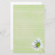 Une papeterie rayée blanche avec une fleur de marguerite Shasta blanche dessinée avec crayon et aquarelle sur un arrière - plan de style texturé vert tendre. Une papeterie gaie pour l'écriture de lettres, la journalisation, les rappels, et plus encore.