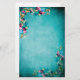 Un livre ouvert de style victorien avec un beau design de défilement et est agrémenté de roses roses et violets contre un arrière - plan turquoise avec une légère texture. Très jolie.
