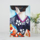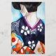avec design original de peinture aquarelle de Geisha japonais en bleu foncé complexe orange kimono avec arrière - plan bleu ciel. Lumineuse et colorée, inspirée de l'art oriental et asiatique, cette belle dame vient de la région japonaise de Kyoto.