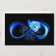 Luminous infinity symbol with glowing, beautiful, lushly blooming rose made of blue flames on black background.
