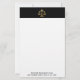 Papier à lettres avec une image de balance dorée sur un arrière - plan noir. Simple et élégant.