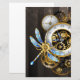 Cadran d'antiquités avec or et lances en laiton, décoré de libellules mécaniques sur arrière - plan brun rayé. Steampunk.