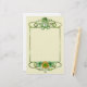 La papeterie douce à thème irlandais présente un arrière - plan crème légèrement texturé avec une bordure verte tourbée gracieusement. Ours en peluche irlandais en casquette et marmite d'or aux accents Shamrocks.