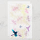 Les pastels sensibles forment l'arrière - plan de cette papeterie, avec des colibris, des papillons, et des libellules dans le premier plan. Un colibri bleu brillant dans en bas à gauche les visages faisants le coin votre signature.
