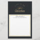 Papier de papeterie "From the desk of" personnalisé avec une illustration couleur or sur un arrière - plan gris-noir. Conçu avec une illustration d'une montagne avec les rayons de soleil brillant vers l'extérieur de derrière. La typographie dit : La vie est une aventure explorer la découverte de rêve. Un carré blanc à écrire à l'intérieur qui a une mince bordure en faux or.