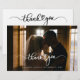 Une façon géniale et réfléchie de remercier vos amis, votre famille et vos collègues qui vous ont honoré de leur présence le jour de votre mariage avec cette photo minimaliste moderne, cartes de remerciement avec script écrit "merci" et un coeur d'amour.