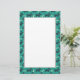 Papeterie conçue avec un motif extensible avec un mignon chien souriant avec des oreilles disgracieuses et un os de chien. Arrière - plan vert. Un cadre blanc avec une bordure noire superposée pour écrire.