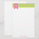 Papeterie Motif diagonal vert de rayures et monogramme rose
