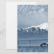 Neige Arrivée ~ Carte Noël. Photographie et graphisme de Robin Hewitt. Photo prise à l'extérieur de Mountain Home, Idaho d'un ranch house avec une montagne enneigée dans l'arrière - plan.