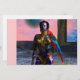 Beauté tatouée noire avec élégante bijouterie dorée avec son perroquet rouge coloré, sous le ciel cosmique rose avec planètes bleues.Cadre d'animation artistique de Hyperion World 3d animation sci-fi long film.