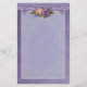 Belle papeterie florale pour correspondance Mariage et Anniversaire. Ce design est composé d'un arrière - plan damassé mauve mauve doux avec une superposition de panneau central violet plus clair. Correspondant bannière haut ornée avec une magnifique paire de roses.