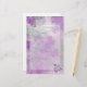 Cette papeterie florale pourpre présente un design floral en couches dans les tons violets, verts et blancs.