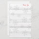 Papier de note de fin d'année pour écrire une lettre de remerciement de Noël. Flammes de neige blanches et coutume, texte rouge au sommet de la papeterie blanche. Les lignes peuvent être supprimées et le texte peut être modifié.