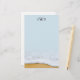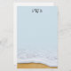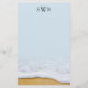 Papier vierge monogramme avec sable de plage et mousse de mer en fond. Le papier lin a une légère teinte bleue, ou changer le type de papier. Trois initiales noires en haut peuvent être supprimées. Bordure de l'image de l'océan au fond. Aucune image à l'envers.