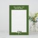 Papier d'écriture de Noël avec texte en haut et une étoile tropicale design. Couleurs traditionnelles rouge et vert avec bloc central de blanc avec lignes. Le texte blanc en haut peut contenir le nom de famille et l'année, ou tout autre texte. Une étoile de mer blanche avec un saint vert orne le fond. L'inverse est un rouge foncé solide. Écrivez cette lettre annuelle à votre famille et à vos amis et incluez-la dans l'une de nos cartes de voeux personnalisées.
