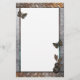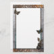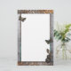 Unique thème de jardin en métal avec papillons en fer et plante. Le thème de la papeterie amusante a l'air de Steam Punk. Arrière - plan d'acier brossé avec bordure en fer rouillé. Les fleurs ont des centres de vis à fente. Fabuleuse idée cadeau grunge pour les jardiniers ou toute personne ayant un goût pour quelque chose de délicieusement différent.