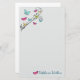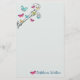 Cette jolie papeterie a ma conception d'une illustration musicale avec un groupe de papillons colorés dans pourpre, rose, bleu, vert et jaune. L'illustration musicale est courbée avec les extrémités mises en rouleau pour un effet artistique. Vous pouvez changer le nom au fond ou employer le texte différent ou le supprimer si vous voulez juste la conception graphique.