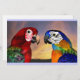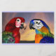 Vibrant, unique et artistique macaws tropicaux 3D avec des plumes colorées en rouge, bleu, vert, orange, jaune, blanc dans la nature sauvage sous le ciel de coucher de soleil rose, créé par Bulgan Lumini (c).