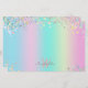 Unicorn Holographic Parties scintillant Stationery - Une papeterie aux couleurs étincelantes avec mélange de turquoise, rose et mauve et parties scintillant jaune clair. Vous pouvez personnaliser ce papier à lettres en y ajoutant votre nom et vos initiales.