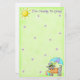 Envoyez des lettres ou d'autres lettres avec cette papeterie mettant en vedette un chien mignon. "Je suis prêt à jouer" - n’est-ce pas ? Ce chien est prêt à s’amuser à la plage avec un ballon de plage et un parapluie. Avec des lunettes de soleil cool, des tongs fuchsia et turquoise, un tee - shirt de plage orange et un casquette de plage violet, il est prêt à partir, habillé en style. L'arrière - plan est vert avec des étoiles violettes. Le soleil brille pour une journée parfaite et il est prêt pour vous à lancer le ballon. Le texte en bas dit "Je suis prêt à jouer".