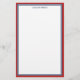 Elégante papeterie personnalisée en blanc avec bordures en rouge et bleu marine. Ajoutez votre nom en bleu foncé !