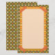 Bright orange striped faux washi tape adorns the corners of this colorful multi pattern design with hand drawn floral and striped patterns in orange, yellow, cream and green, bordering a spacious cream writing paper.