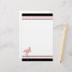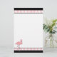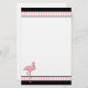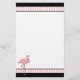 Papeterie blanche élégante, avec un en-tête et un titre de bas de page noirs avec les rayures roses et blanches. Les graphiques mignons d'un flamant assez rose décore en bas à gauche le faisant le coin de la papeterie. Customisez pour ajouter votre propre texte.