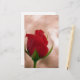 Une seule rose rouge dans notre jardin. Toujours dans l'oeuf, défrichant lentement ses magnifiques pétales de pourpre, attendant d'éclater en pleine floraison. Une photo prise de sa beauté naturelle. Un seul rose, l'incarnation de l'amour et de l'amour.