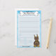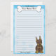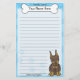 Papeterie colorée de Pinscher de dobermann de Kawaii avec une race de chien de bande dessinée dans le coin inférieur droit. La partie supérieure peut être immédiatement personnalisée avec votre nom à l'intérieur du grand os de chienchien. L'arrière - plan de frontière et de papier sont un bleu lumineux. C'est le rouge et le dobermann bronzage.
