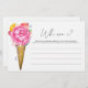 Cette douche nuptiale à thème crème glacée est décorée de fleurs d'aquarelle et d'un cône de crème glacée. Le texte dit "Elle a été scoopée !" dans la typographie stylée rose.