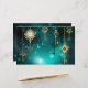 Or, clés antiques avec engrenages et cadrans accrochés sur chaînes dorées sur arrière - plan vert lumineux.