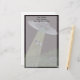 Un dessin au crayon couleur d'une vache malheureuse enlevée par des aliens dans une soucoupe volante orne cette stationnaire personnalisable!