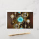 Turquoise lenses with antique watch with brass gears and golden keys on rusty, brown background. Steampunk style.
