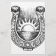 Illustration de style tatouage du fer à cheval embelli et décoratif avec soleil et mer brillants au milieu sur arrière - plan isolé.