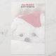 Papier à lettres avec une adorable photo d'un mignon chien blanc portant un casquette de Noël rouge.