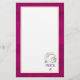 Papeterie avec un design humoristique. Un maïs dormant avec une crinière et une queue fantaisie. Décoré avec un trio d'étoiles. Un arc-en-ciel voûtait au-dessus. Une couronne circulaire composée de nuages, de coeurs et de fleurs pour un parfum girly supplémentaire. La typographie dit Magical AF. L'arrière - plan est de couleur cerise rose foncé. Un rectangle blanc avec une bordure dorée permet une écriture lisible et facile. Humour et mignon.