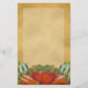 Papeterie doublée à l'art vintage de légumes de l'héritier avec tomates, carottes et maïs sur un arrière - plan faux parchemin. Cliquez sur Customiser pour ajouter votre nom ou votre message