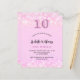 Une invitation moderne, élégante et glamour pour la fête du 10e anniversaire d'une fille. Un arrière - plan rose vif aux confettis. Le nom est écrit avec un script de style moderne écrit à la main. Personnalisez et ajoutez les détails de votre fête. Le numéro 10 est écrit avec une police de style ballon, un script. 1 feuille = 1 invite imprimé bord à bord.